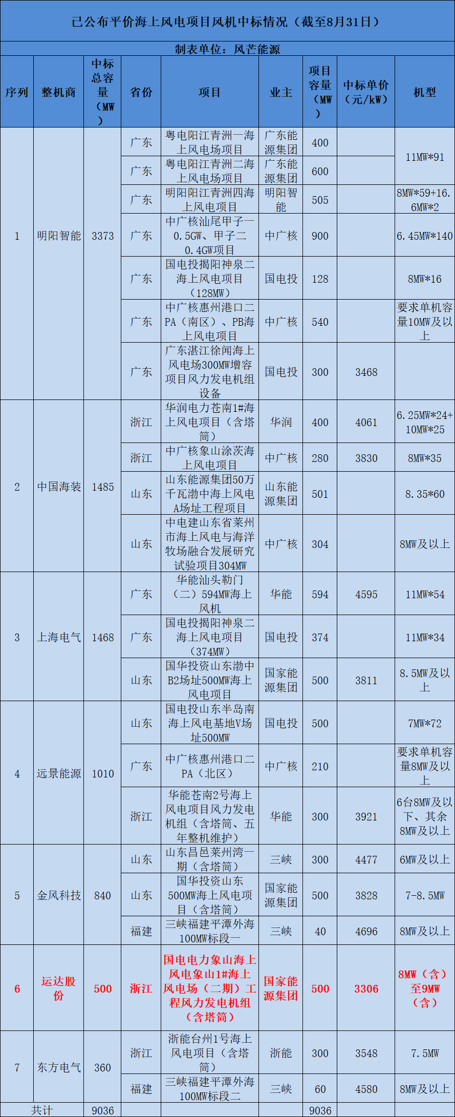 根據(jù)公開信息不完全統(tǒng)計(jì),該項(xiàng)目為運(yùn)達(dá)股份在國內(nèi)中標(biāo)的首個(gè)海上風(fēng)電項(xiàng)目。
