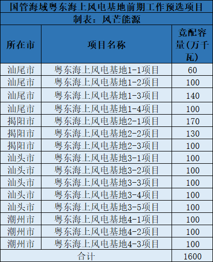 國管海域項(xiàng)目配置范圍。先安排15個(gè)、共1600萬千瓦的預(yù)選項(xiàng)目,其中汕頭市5個(gè)、500萬千瓦,汕尾市4個(gè)、400萬千瓦,揭陽市3個(gè)、400萬千瓦,潮州市3個(gè)、300萬千瓦;再從中遴選出800萬千瓦的項(xiàng)目作為開展前期工作的示范項(xiàng)目。
