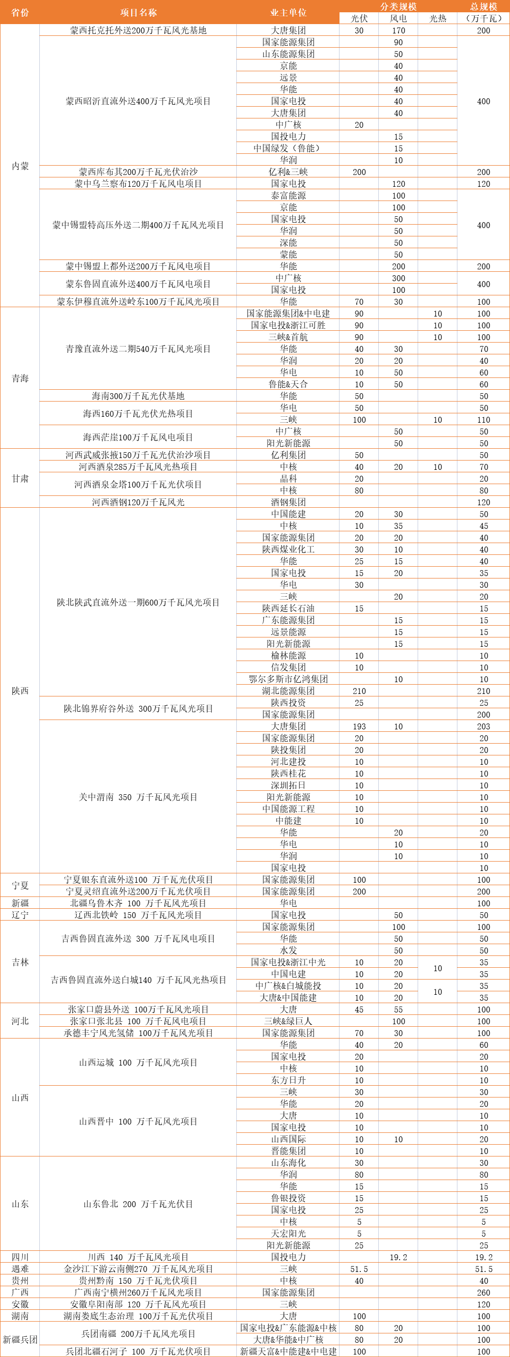 說明:上述數(shù)據(jù)通過公開信息整理,各企業(yè)數(shù)據(jù)存在未明確項目,具體以企業(yè)官方數(shù)據(jù)為準(zhǔn)。此外,大基地存在聯(lián)合體業(yè)主,本表數(shù)據(jù)以牽頭企業(yè)為主。