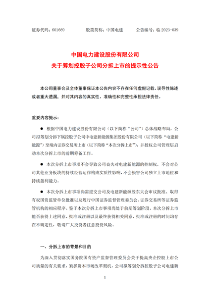 重磅!中國電建擬分拆新能源業(yè)務獨立上市!