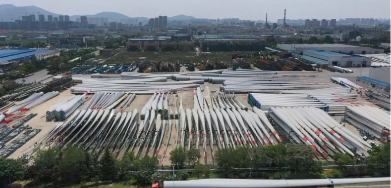 江蘇連云港大浦工業(yè)園區(qū)內(nèi),一支支百米長的“龐然大物”整齊碼放,等待奔赴深藍(lán)。中復(fù)連眾復(fù)合材料集團(tuán)有限公司生產(chǎn)經(jīng)理薄杉杉指著它們說:“我們現(xiàn)在生產(chǎn)一只葉片只需要十來天的時(shí)間,可在十幾年前,我們連一支大風(fēng)機(jī)機(jī)組葉片都造不出來,全得指望進(jìn)口。”