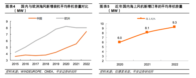 海上風(fēng)機(jī)方面,整體看,歐美單機(jī)容量14-15MW、葉輪直徑236米左右的大兆瓦海上新品有望于2024-2025年開始批量交付。