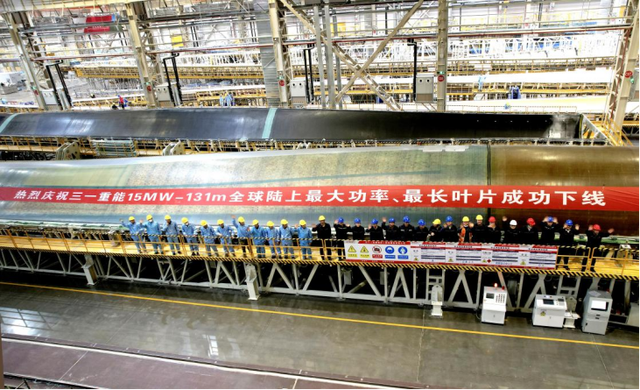 1月21日,三一重能131米陸上風電葉片在巴彥淖爾零碳數智產業(yè)園下線,刷新全球最長陸上風電葉片紀錄。