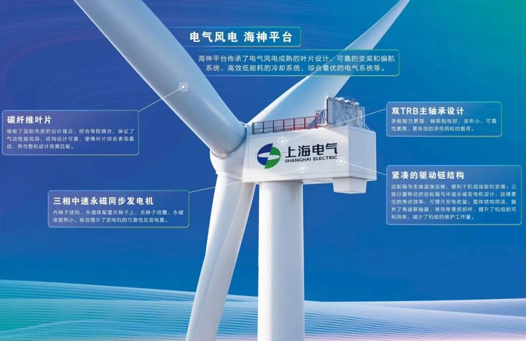 海神平臺傳承了電氣風(fēng)電成熟的葉片設(shè)計、可靠的變槳和偏航系統(tǒng)、高效低能耗的冷卻系統(tǒng)、綜合最優(yōu)的電氣系統(tǒng)等。在碳纖維葉片、雙TRB主軸承設(shè)計、三相中速永磁同步發(fā)電機(jī)、緊湊的驅(qū)動鏈結(jié)構(gòu)等方面創(chuàng)新設(shè)計,并針對不同海域的風(fēng)資源稟賦和海洋地質(zhì)條件,因地制宜,提供適合當(dāng)?shù)氐淖罴呀鉀Q方案。