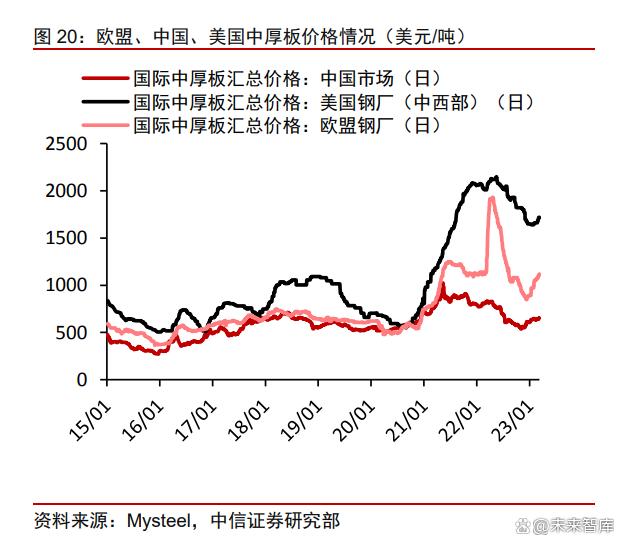 海外塔筒樁基生產(chǎn)成本高昂,國(guó)內(nèi)成本優(yōu)勢(shì)強(qiáng)化。對(duì)比歐洲單樁龍頭 Sif 平均出貨價(jià) 格近 2500 歐元/噸(約合人民幣 1.9 萬(wàn)元/噸),且供需緊縮呈價(jià)漲趨勢(shì),我國(guó)單樁價(jià)格約 0.8 萬(wàn)元/噸。在原材料成本方面,以天風(fēng)順能披露的數(shù)據(jù)為例,鋼材、法蘭等原材料成本 占塔筒總成本的 82%,其中鋼板(中厚板)成本占 57%,對(duì)比俄烏戰(zhàn)爭(zhēng)爆發(fā)以來的歐洲 鋼材價(jià)格暴漲,中厚板國(guó)內(nèi)外價(jià)差拉大。2023 年 3 月歐盟鋼廠中厚板均價(jià) 1100 美元/噸, 美國(guó)鋼廠均價(jià) 1710 美元/噸,而中國(guó)市場(chǎng)均價(jià) 649 美元/噸。在人工成本方面,根據(jù)歐盟披 露,歐盟本地塔筒企業(yè)的人均人工成本為 4.8 萬(wàn)歐元/年,明顯高于國(guó)內(nèi)主要塔筒企業(yè)的人 均薪酬。我們預(yù)計(jì)塔筒環(huán)節(jié)有望進(jìn)一步強(qiáng)化國(guó)產(chǎn)出海的成本優(yōu)勢(shì),樁基環(huán)節(jié)暫無(wú)反傾銷限 制,有望實(shí)現(xiàn)產(chǎn)品出口的突破。