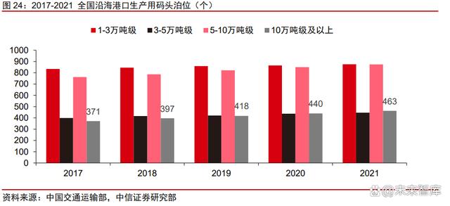 碼頭資源稀缺,港口岸線審批難度大。碼頭建設(shè)需通過省政府審批滿足規(guī)劃,港口岸 線使用權(quán)需要通過國家交通運(yùn)輸部批復(fù),碼頭岸線的資源審批難度持續(xù)加大,同時港口建 設(shè)需要自然條件良好的岸線資源,對周邊配套資源也有較高的要求。據(jù)中國交通運(yùn)輸部披 露的數(shù)據(jù),截至 2021 年底,我國萬噸級及以上泊位數(shù)量共計 2659 個,風(fēng)電塔筒管樁運(yùn)輸 所需的 10 萬噸級及以上泊位數(shù)量共計 463 個,占萬噸級及以上泊位數(shù)量的 17%,年新增 數(shù)僅 23 個。因此已獲審批的港口碼頭等生產(chǎn)基地逐步成為稀缺資源,掌握相關(guān)資源的廠 商先發(fā)優(yōu)勢顯著。