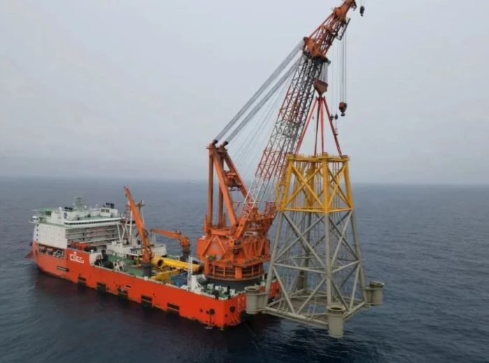 作為青洲四升壓站項(xiàng)目的核心根基,此次完工的導(dǎo)管架主體高66.1米,重2920噸,基礎(chǔ)樁直徑4.3米,長94~97米,單根最重570噸,水下沉樁基礎(chǔ)施工采用了直徑4.3米,長度40.5米的送樁器,打破了水下施工液壓打樁錘的限制,拓寬了現(xiàn)有施工裝備的局限。