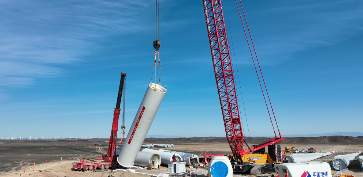 10月3日,由水電十一局牽頭總包承建的電建集團(tuán)投資建設(shè)的陸上最大風(fēng)電項目——新疆巴里坤60萬千瓦風(fēng)儲項目首臺風(fēng)機(jī)塔筒成功開始吊裝。