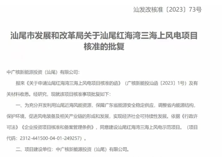 《批復(fù)》顯示,汕尾紅海灣五海上風(fēng)電項(xiàng)目建設(shè)單位為華潤(rùn)風(fēng)電(汕尾)有限公司。項(xiàng)目位于汕尾紅海灣經(jīng)濟(jì)開(kāi)發(fā)區(qū)南側(cè)海域,場(chǎng)址中心離岸距離30km,水深30-40m,總規(guī)劃容量為500MW,擬安裝28臺(tái)單機(jī)容量18MW級(jí)的風(fēng)力發(fā)電機(jī)組。該項(xiàng)目靜態(tài)總投資為480966萬(wàn)元(不含送出海纜、海上升壓站、陸上集控中心等送出工程),動(dòng)態(tài)總投資為489755萬(wàn)元。
