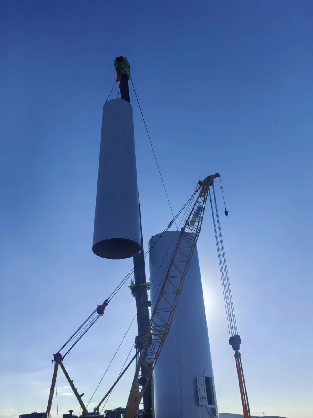 該項(xiàng)目位于新疆維吾爾自治區(qū)昌吉回族自治州木壘縣大石頭村一帶,距離木壘縣約70千米處,場(chǎng)址海拔1400-2100米,場(chǎng)址為低中山丘陵地貌,地勢(shì)開闊,地形起伏。該項(xiàng)目單機(jī)容量10兆瓦,是陸上單機(jī)容量最大的風(fēng)電機(jī)組,單機(jī)共5段,其中T1、T2段為分片式塔架,輪轂高度118米,單段最大重量約111噸。