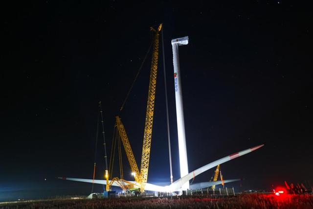 施工過(guò)程中,項(xiàng)目團(tuán)隊(duì)充分發(fā)揮“嚴(yán)、細(xì)、實(shí)”的工作作風(fēng),時(shí)刻關(guān)注天氣變化,克服了本年度首輪寒潮和大雪的影響,緊密協(xié)同、高效配合,通過(guò)科學(xué)施工組織、周密作業(yè)準(zhǔn)備、嚴(yán)格質(zhì)量檢驗(yàn),機(jī)艙和葉輪在連續(xù)施工40小時(shí)后成功對(duì)接,圓滿完成首臺(tái)風(fēng)機(jī)吊裝作業(yè)。