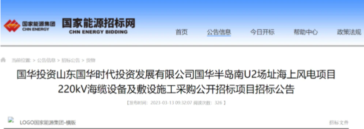 招標(biāo)范圍為國(guó)家能源集團(tuán)國(guó)華半島南U2海上風(fēng)電項(xiàng)目2回(兩期各1回)220kV海纜設(shè)備采購(gòu)及敷設(shè)施工,包括但不限于:(具體詳見(jiàn)第五章技術(shù)文件)