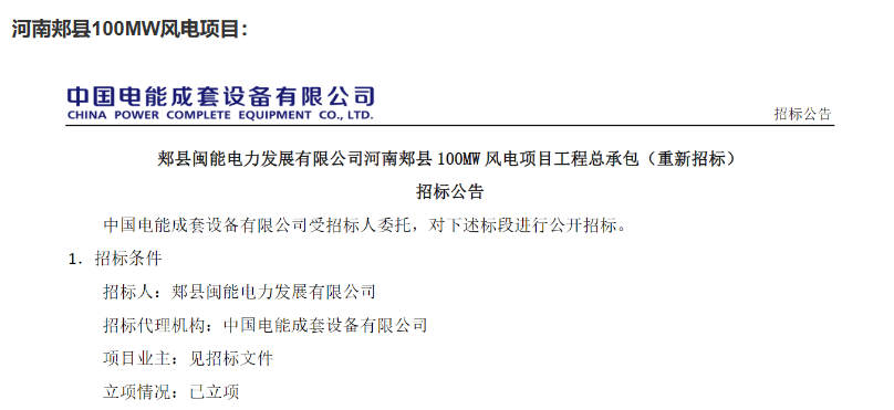 公告顯示,郟縣 100MW風(fēng)電項目位于河南省平頂山市郟縣,規(guī)劃裝機(jī)容量為 100MW,擬安裝20臺5.0MW風(fēng)電機(jī)組,新建 220kV 升壓站一座,并配置41.4MW/82.56MWh磷酸鐵鋰電池儲能。