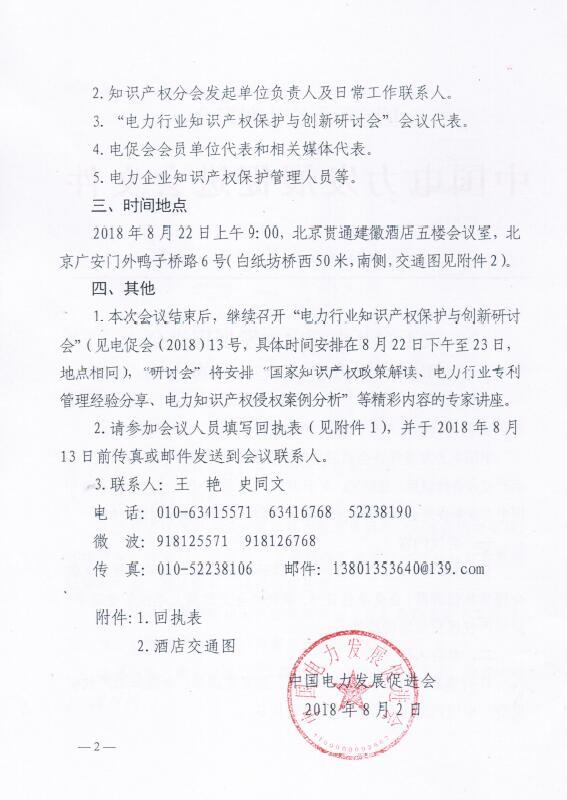 關于召開中國電力發(fā)展促進會知識產(chǎn)權分會成立大會的通知