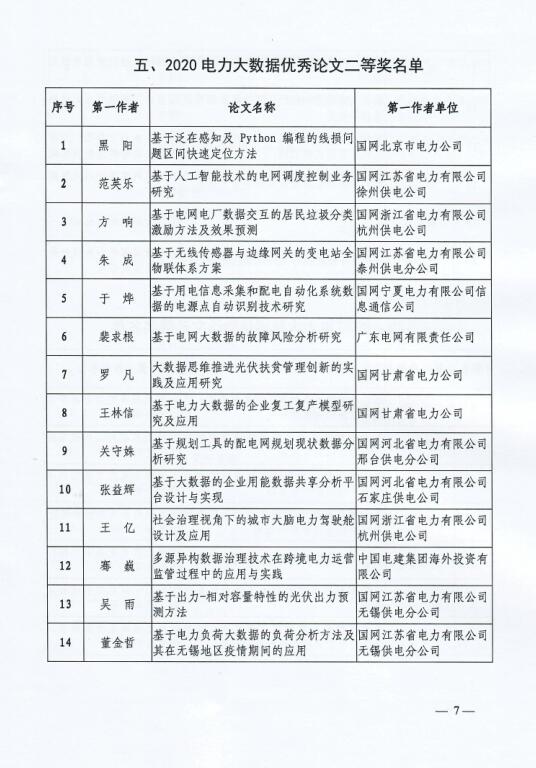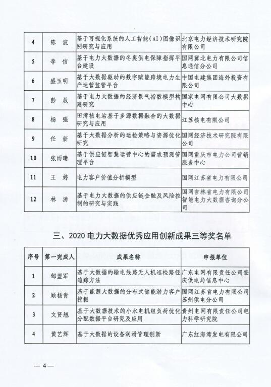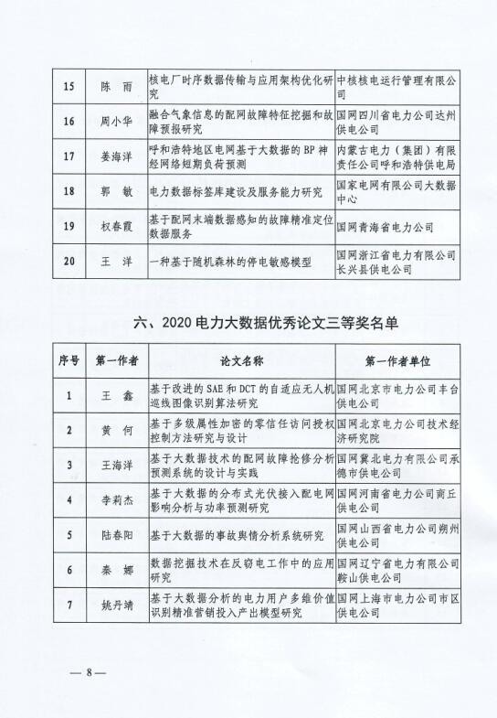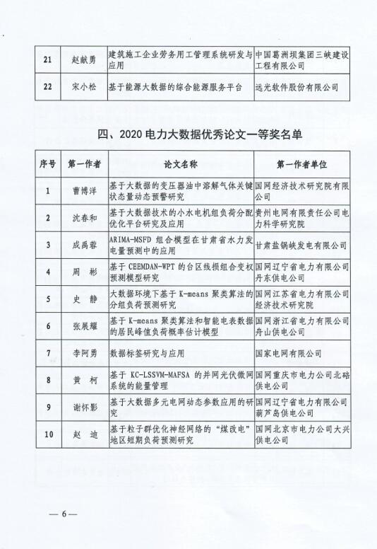 附件:2020電力大數(shù)據(jù)優(yōu)秀應(yīng)用創(chuàng)新成果(論文)獲獎(jiǎng)名單