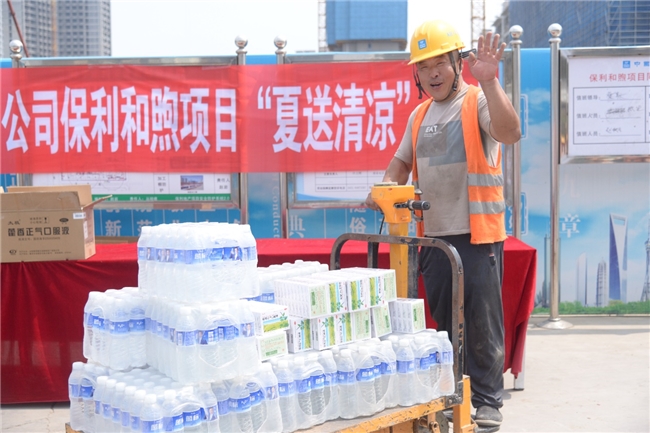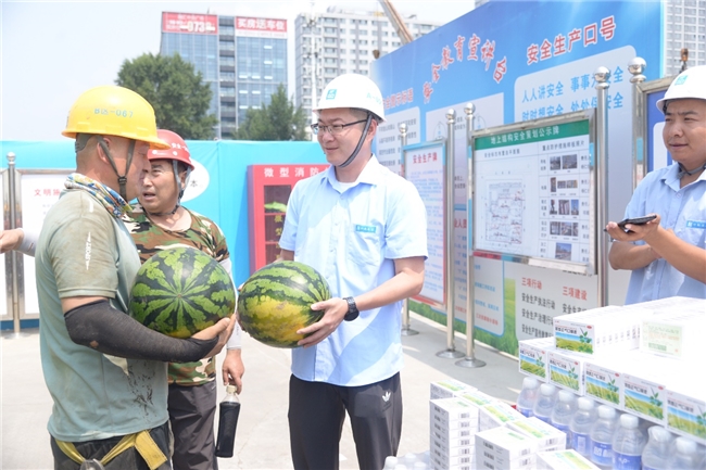 慰問中,領(lǐng)導(dǎo)班子成員親手將藿香正氣水等防暑降溫慰問品送到奮戰(zhàn)在一線的工人手上,黨支部書記、項目指揮長叢培建強調(diào),我們要切實把工人的身體健康放在首位,不斷改善一線勞動者的工作條件,嚴(yán)格落實防暑降溫保障工作,確保奮戰(zhàn)在一線的勞動者安全度夏,保障生產(chǎn)工作有序開展,積極創(chuàng)造更好的勞動環(huán)境,切實維護(hù)好工人合法權(quán)益。