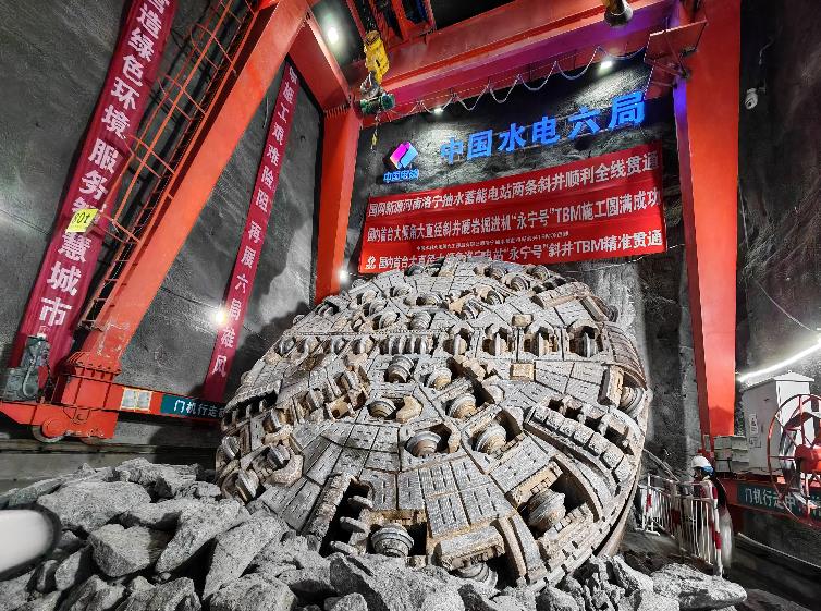 近日,由中國中鐵聯(lián)合國家電網(wǎng)、水電六局共同研制的國產(chǎn)首臺大直徑大傾角斜井硬巖掘進機“永寧號”精準貫通2號引水斜井,標志著洛寧抽水蓄能電站引水斜井工程兩條關(guān)鍵性引水斜井全線貫通,刷新了我國在抽水蓄能電站建設(shè)領(lǐng)域機械化施工新紀錄,國內(nèi)機械化全斷面開挖斜井新模式成功應(yīng)用。