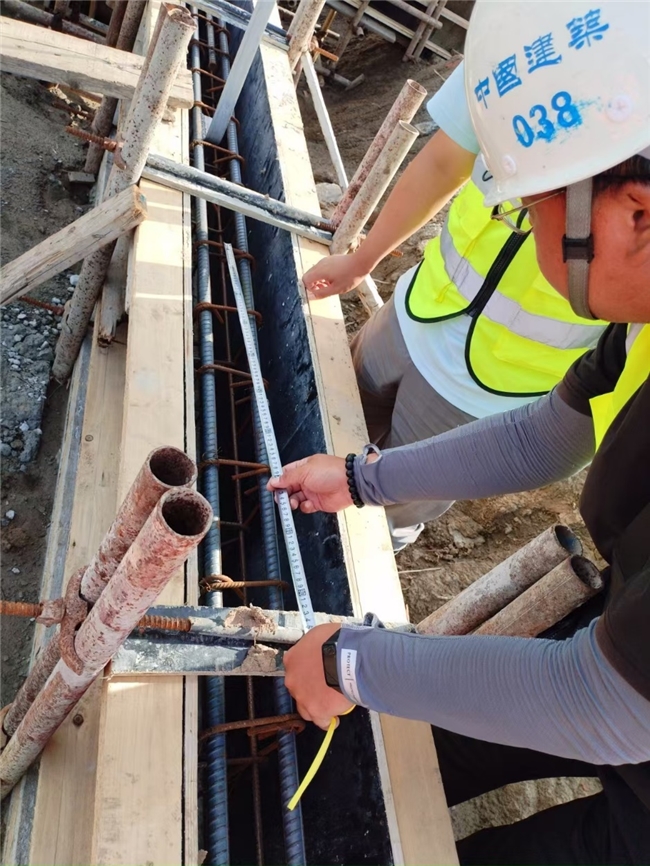 施工過程中,黨員攻堅先鋒隊成員始終堅守崗位,他們猶如一面面鮮紅的旗幟,屹立在施工一線。他們嚴(yán)格依照施工方案和質(zhì)量控制標(biāo)準(zhǔn)操作,以嚴(yán)謹?shù)膽B(tài)度和專業(yè)的技能,認真檢查鋼筋的規(guī)格、數(shù)量、間距等,確保鋼筋安裝準(zhǔn)確無誤。在鋼筋連接方面,他們采用先進的連接技術(shù),經(jīng)過反復(fù)的試驗和調(diào)試,確保連接牢固可靠。為了確保首件樣板的質(zhì)量,先鋒隊成員強化了質(zhì)量檢測和控制,對每一道工序都進行嚴(yán)格的檢查和驗收。他們不放過任何一個微小的瑕疵,一旦發(fā)現(xiàn)問題,立即進行整改,確保問題得到及時解決。此外,他們還邀請專業(yè)質(zhì)量檢測機構(gòu)對首件樣板進行檢測,從多個角度、全方位地保障質(zhì)量,力求做到精益求精。