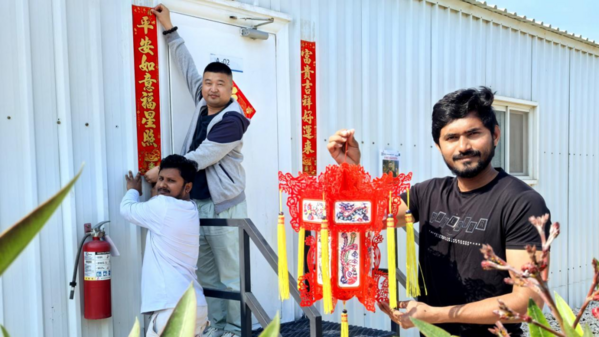 沙特國王港項目部精心策劃了一系列慶?;顒?,讓中外員工共度歡樂祥和的中國年。團拜會上,項目部向全體員工送上新春祝福,感謝大家的辛勤付出,并鼓勵團隊在新的一年再接再厲,共創(chuàng)佳績。中外員工歡聚一堂,傾情演出,互致問候,現(xiàn)場氣氛熱烈喜慶。除夕夜,項目部組織了包餃子活動,大家紛紛動手參與,搟皮、包餡、捏褶,忙得不亦樂乎。許多外籍員工在中國同事的指導下,第一次體驗制作餃子的樂趣,感嘆這一傳統(tǒng)習俗的獨特魅力。年夜飯上,項目食堂特別準備了豐盛的中式年菜,中外員工圍坐一堂,共享美食,暢談文化習俗。大家紛紛表示,將以更加飽滿的熱情投入工作,為項目高質(zhì)量履約貢獻力量,共同推動“一帶一路”建設邁上新臺階。