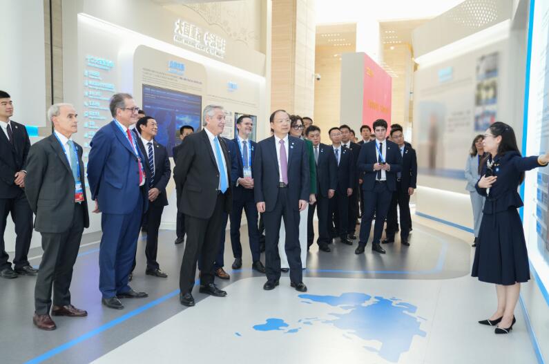 會(huì)談前,費(fèi)爾南德斯總統(tǒng)一行在陳曉華的陪同下參觀了中國能建企業(yè)展廳。