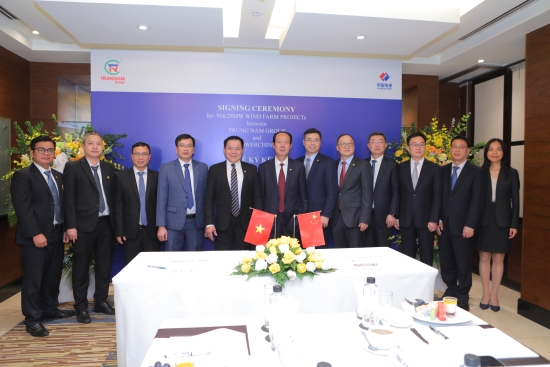 當(dāng)天下午,丁焰章與越南中南集團總經(jīng)理阮心進(jìn)舉行會談,雙方就深化能源電力領(lǐng)域合作進(jìn)行深入交流,并共同見證916兆瓦風(fēng)電項目群工程總承包合同簽署。
