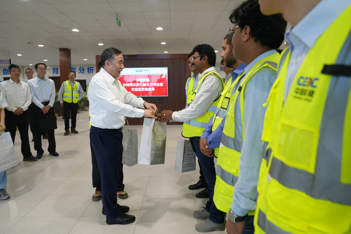 當(dāng)?shù)貢r(shí)間6月10日,中國能建黨委書記、董事長宋海良一行赴沙特阿爾舒巴赫2.6吉瓦光伏項(xiàng)目進(jìn)行現(xiàn)場調(diào)研,開展端午節(jié)慰問活動(dòng),強(qiáng)調(diào)要堅(jiān)定不移推動(dòng)國際業(yè)務(wù)優(yōu)先優(yōu)質(zhì)協(xié)同發(fā)展,強(qiáng)化資源高效統(tǒng)籌,深化“三引領(lǐng)一合作”,全力打造更多“一帶一路”示范標(biāo)桿項(xiàng)目。