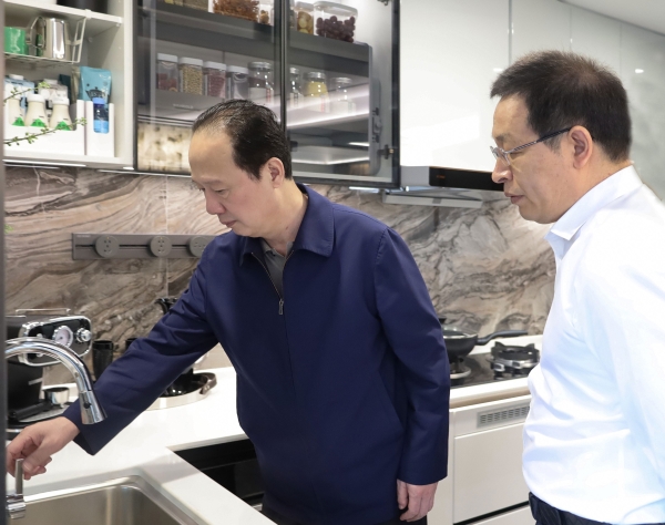 在電建地產(chǎn)公司所屬成都國賓華曦府項目,丁焰章實地查看售樓部、展示區(qū)及樣板間,了解項目建設(shè)和經(jīng)營情況,對電建地產(chǎn)公司近期工作給予肯定,對國賓華曦府項目的產(chǎn)品呈現(xiàn)和精工細(xì)作表示認(rèn)可。