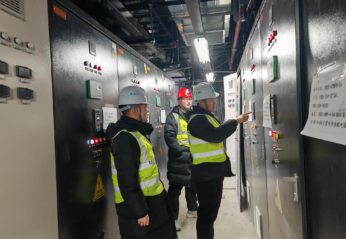 “必須保證所有變電所分閘,防止重新送電時(shí)電流直接沖擊設(shè)備”“屋面泵房再去兩個(gè)人,重新起泵并保證壓力正常”“拿好對(duì)講機(jī),一間屋一間屋地送電”……現(xiàn)場(chǎng)總指揮、項(xiàng)目生產(chǎn)經(jīng)理閆鵬的聲音堅(jiān)定有力,全體值班人員嚴(yán)陣以待,緊張有序地執(zhí)行著操作指令。送電后,屋面泵房傳來(lái)水泵“轟隆隆”的機(jī)器運(yùn)轉(zhuǎn)聲。調(diào)試成功有效驗(yàn)證了柴發(fā)機(jī)組自身穩(wěn)定性和機(jī)組系統(tǒng)負(fù)荷控制能力,值班人員激動(dòng)地歡呼。