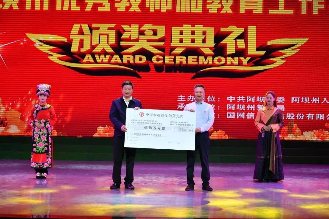 國網(wǎng)信通股份作為阿壩州唯一的上市公司,一直心系阿壩州的鄉(xiāng)村振興各項(xiàng)工作。本次頒獎(jiǎng)典禮上,國網(wǎng)信通股份聯(lián)營的四川福堂水電有限公司向阿壩州教育基金會(huì)捐贈(zèng)教師獎(jiǎng)勵(lì)基金資助50萬元,用于設(shè)立“國網(wǎng)信通·福堂教師獎(jiǎng)”獎(jiǎng)勵(lì)基金,并在本次中表彰100名優(yōu)秀教育工作者。該基金將持續(xù)用于獎(jiǎng)勵(lì)阿壩州教育系統(tǒng)做出突出貢獻(xiàn)的優(yōu)秀教師和教育工作者,為“鄉(xiāng)村振興”和“一州兩區(qū)三家園”建設(shè)提供智力支持和人才支撐。
