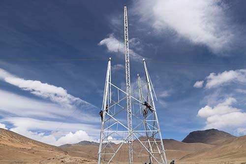 阿里聯(lián)網(wǎng)工程起于西藏日喀則市桑珠孜區(qū)多林220千伏變電站,止于阿里地區(qū)噶爾縣220千伏巴爾變電站,跨越西藏2個(gè)地市10個(gè)區(qū)縣,線路長(zhǎng)度1689公里,該工程是繼青藏聯(lián)網(wǎng)、川藏聯(lián)網(wǎng)、藏中聯(lián)網(wǎng)3條“電力天路”之后,國(guó)家電網(wǎng)有限公司建設(shè)的又一項(xiàng)突破生命禁區(qū)、挑戰(zhàn)生存極限的世界超高海拔、超大難度的輸變電工程。工程的投運(yùn)將徹底結(jié)束阿里電網(wǎng)孤網(wǎng)運(yùn)行歷史,讓仲巴、薩嘎、吉隆、聶拉木、普蘭、改則和措勤等7個(gè)縣用上大網(wǎng)電,解決和改善沿線近38萬農(nóng)牧民“雖已通電但經(jīng)常停電”的安全可靠用電問題,助力西藏邊境地區(qū)建設(shè)和決勝脫貧攻堅(jiān),適應(yīng)邊境鐵路建設(shè)發(fā)展要求。中國(guó)安能第二工程局承擔(dān)了線路包9標(biāo)段施工任務(wù)。