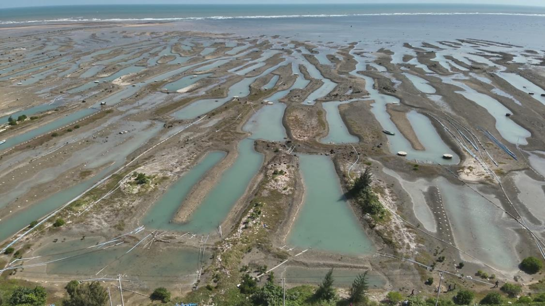 ▲圖4 2023年11月22日,督察組現(xiàn)場督察使用無人機拍攝,清瀾紅樹林省級自然保護區(qū)大量養(yǎng)殖塘取排水設施導致海灘被嚴重擾動侵蝕,溝壑密布,觸目驚心