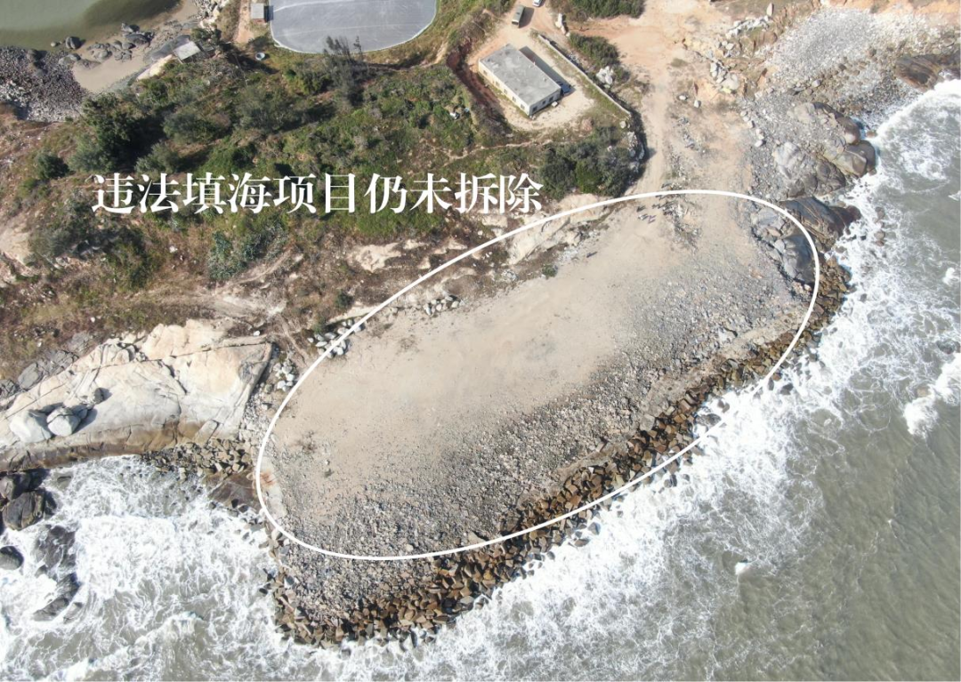 ▲圖2 2023年11月25日,督察組現(xiàn)場督察使用無人機拍攝,發(fā)現(xiàn)漳浦縣赤湖鎮(zhèn)違法填海項目仍未拆除