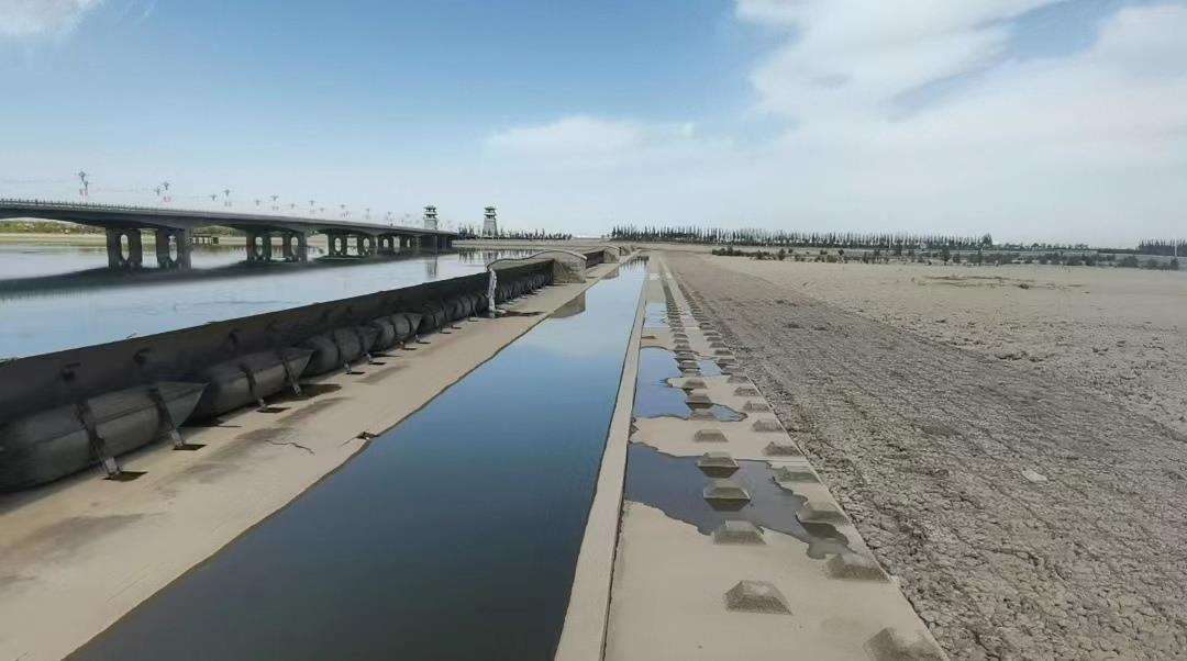 ▲圖3 2023年8月24日,督察組暗查發(fā)現(xiàn),甘州區(qū)在黑河新城大橋下游建設橡膠壩蓄水