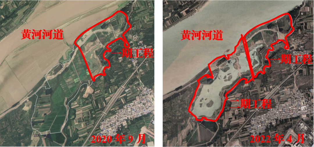 ▲圖1 2020年9月與2022年4月好陽河濕地公園區(qū)域衛(wèi)星影像對比圖