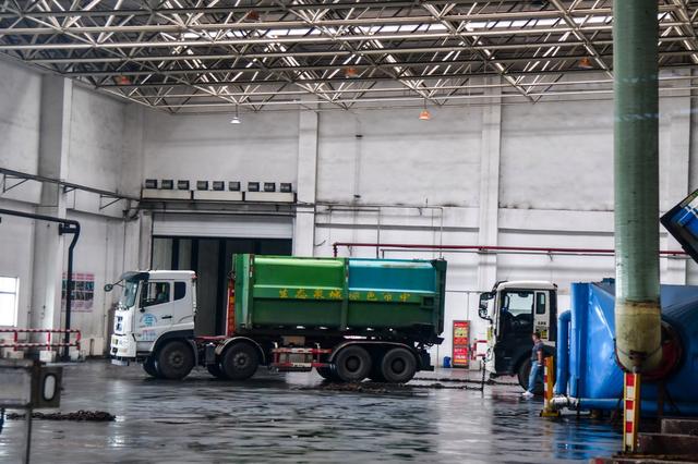 9月19日,在山東啟迪濟(jì)能環(huán)??萍加邢薰?,運(yùn)輸車在負(fù)壓車間內(nèi)卸載生活垃圾。