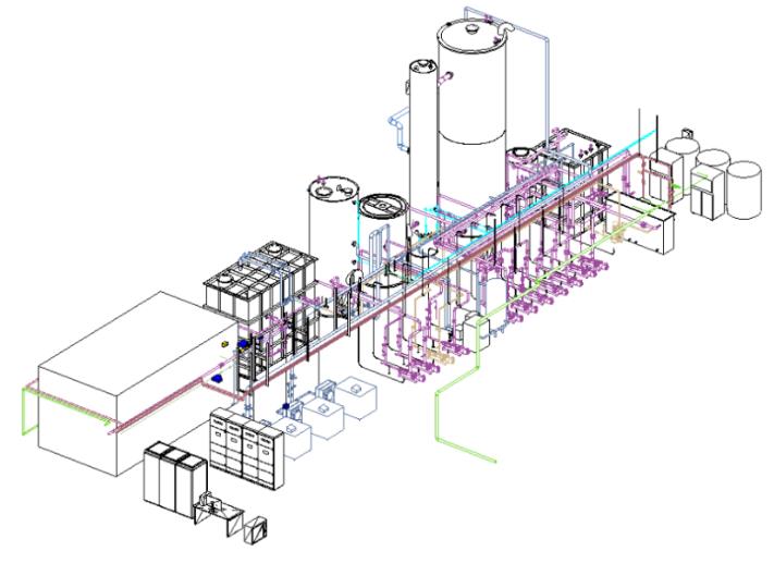 在智能調(diào)控方面,實(shí)現(xiàn)模塊設(shè)計(jì),核心運(yùn)行參數(shù)均完成控制策略編程,采用智能化實(shí)時(shí)優(yōu)化調(diào)控;核心硬件設(shè)備、反應(yīng)單元均采用撬裝設(shè)計(jì),模塊化組裝,集成度高,項(xiàng)目落地快。北控厭氧氨氧化技術(shù)已進(jìn)行有效驗(yàn)證,在昆明餐廚垃圾處理項(xiàng)目開展生產(chǎn)性驗(yàn)證工程,通過(guò)BIM設(shè)計(jì)及裝配式撬裝施工,采用“預(yù)處理+高負(fù)荷脫碳+厭氧氨氧化”工藝系統(tǒng),處理對(duì)象為餐廚沼液廢水(高氨氮+高有機(jī)物),處理規(guī)模30~50m³/d。項(xiàng)目組科學(xué)制定控制策略,合理設(shè)置控制參數(shù),不斷迭代自控程序,目前該驗(yàn)證工程已實(shí)現(xiàn)6個(gè)月的穩(wěn)定運(yùn)行。
