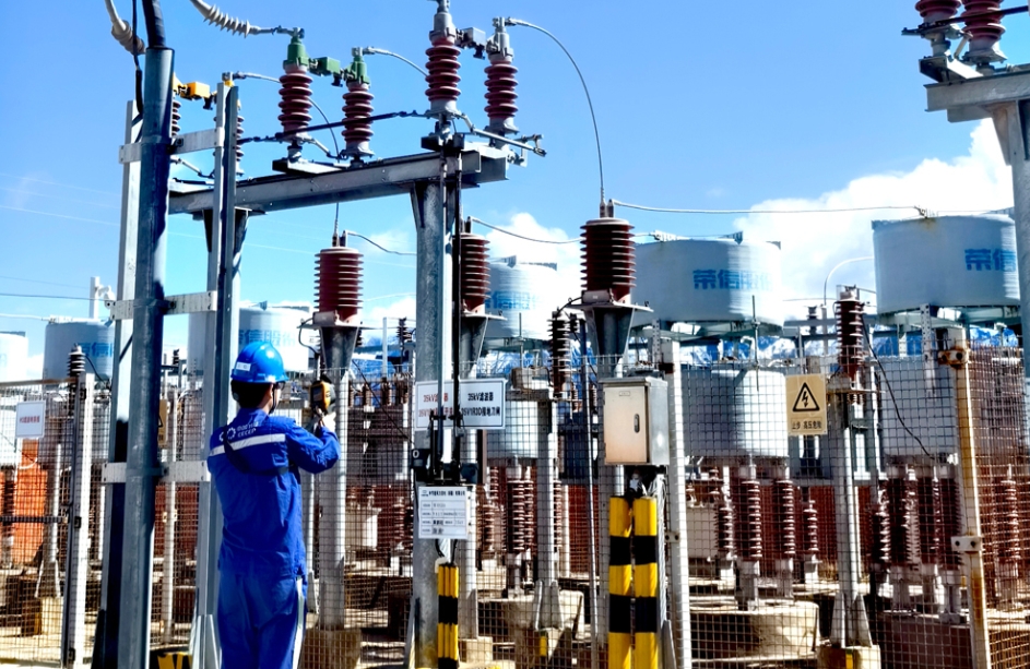 風電新疆區(qū)域公司托里風場生產(chǎn)人員對升壓站設(shè)備進行測溫,確認設(shè)備安全運行