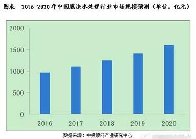 綜合多重因素預(yù)測,“十三五”期間膜法水處理行業(yè)產(chǎn)值五年復(fù)合增速大概落在10-15%間,若以13%進(jìn)行計算,到2020年我國膜法水處理行業(yè)市場規(guī)模將達(dá)1600億元左右。