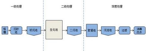 按處理深度通??蓪?span id="xhix2rjch" class="hrefStyle">污水處理分為一級(jí)處理、二級(jí)處理和深度處理。一級(jí)處理的主要目的是去除懸浮狀態(tài)固體,常采用物理法,對(duì)于BOD5的去除率一般在20%~30%;二級(jí)處理的目的是進(jìn)一步去除污水中膠體和溶解性污染物,常使用生物法,BOD5的去除率在90%以上;深度處理以達(dá)到更高的處理與排放要求或污水回用為目的。膜法技術(shù)通常用于處理二級(jí)處理活性污泥出水,或者將膜處理系統(tǒng)直接臵于生化池,代替原有二沉池、絮凝沉淀池等環(huán)節(jié)。使用膜法技術(shù)改造之后,傳統(tǒng)污水處理工藝可以直接生產(chǎn)出高品質(zhì)再生水。