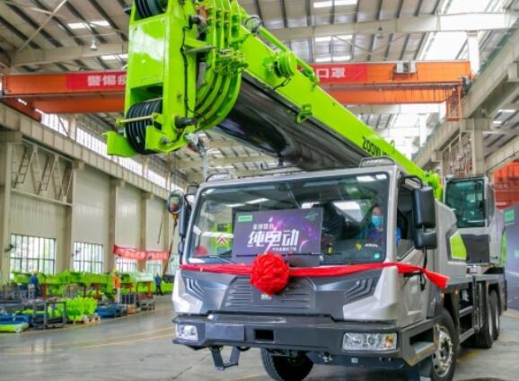 5月7日,一臺25噸極光綠純電動汽車起重機在長沙中聯重科泉塘工業(yè)園下線。這是全球首臺純電動汽車起重機,被譽為工程機械版“特斯拉”。