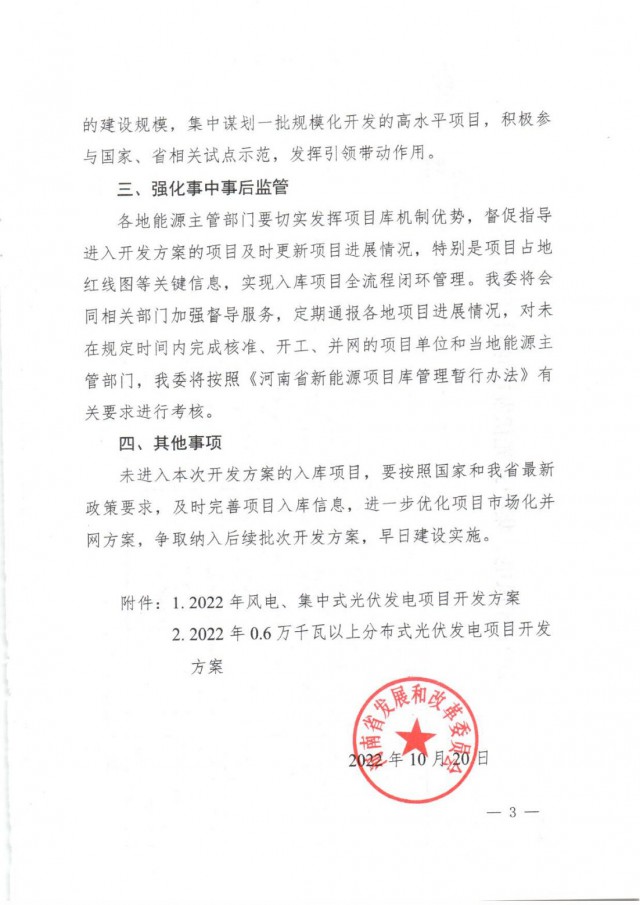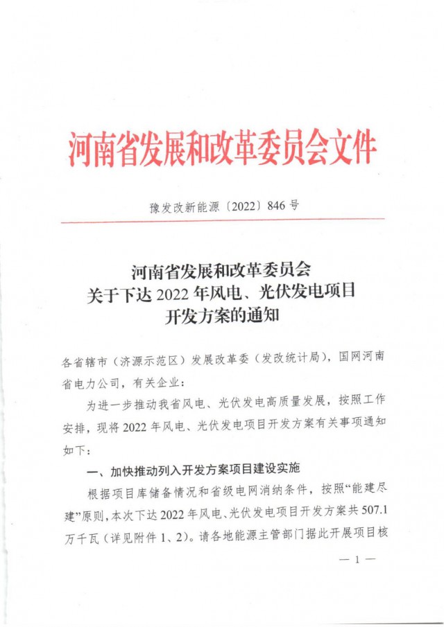 10月21日,河南省發(fā)改委發(fā)布《關于下達2022年風電、光伏發(fā)電項目開發(fā)方案的通知》。