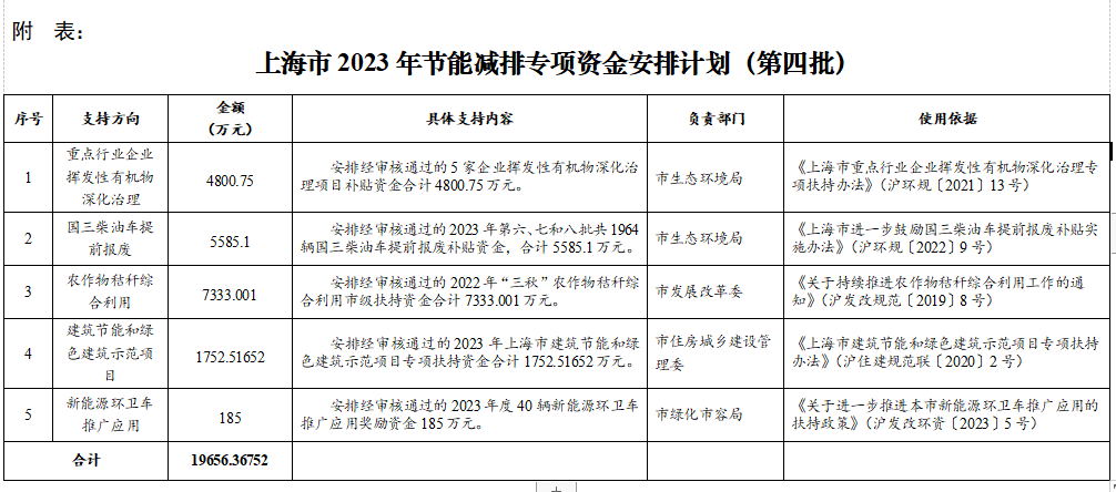 11月8日,上海市發(fā)改委下達(dá)2023年第四批節(jié)能減排專項資金安排計劃,共5項,合計19656.36752萬元。其中,安排經(jīng)審核通過2023年上海市建筑節(jié)能和綠色建筑示范項目專項扶持資金合計1752.51652萬元。