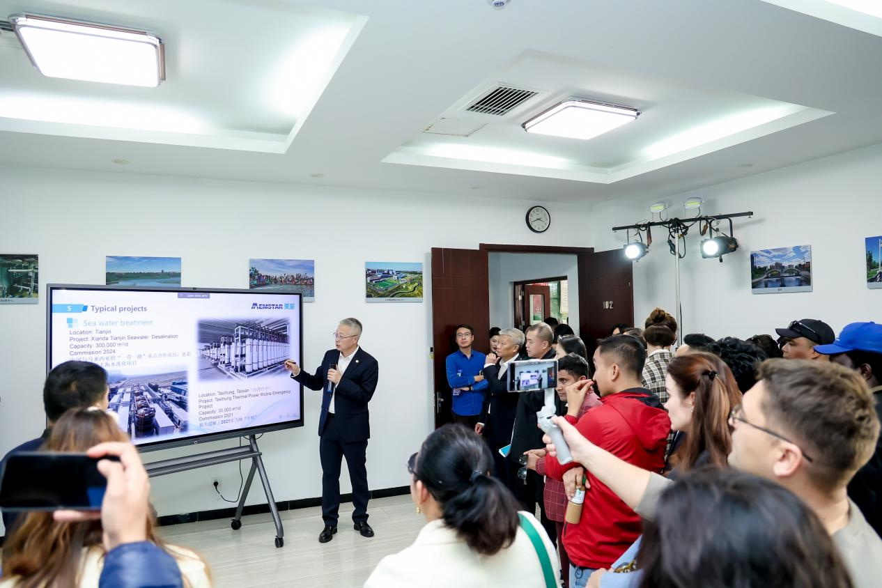 在近距離感受中信的水處理科技魅力后,在座談交流環(huán)節(jié),外媒對(duì)推動(dòng)全球環(huán)境治理的“中信方案”與“中信技術(shù)”興趣濃厚,圍繞如何平衡生態(tài)保護(hù)與經(jīng)濟(jì)發(fā)展、如何通過(guò)科技創(chuàng)新呵護(hù)綠色地球等話題,與中信環(huán)境展開(kāi)熱烈而深入的交流。外媒團(tuán)記者將目光聚焦于中信環(huán)境的核心業(yè)務(wù)優(yōu)勢(shì)、美能膜技術(shù)亮點(diǎn)、海外市場(chǎng)布局、項(xiàng)目建設(shè)計(jì)劃等內(nèi)容,踴躍提問(wèn)、積極發(fā)言。“中國(guó)茶與美能水給我們留下深刻印象,在水處理方面美能有何獨(dú)特技術(shù)優(yōu)勢(shì)?”“中信環(huán)境的生態(tài)技術(shù)和業(yè)務(wù)非常棒,未來(lái)是否有在中亞地區(qū)進(jìn)一步開(kāi)拓市場(chǎng)的計(jì)劃?”“作為一家國(guó)際環(huán)保企業(yè),中信環(huán)境在不同地區(qū)有何不同市場(chǎng)策略?”“中信環(huán)境如何保證海外項(xiàng)目的可持續(xù)發(fā)展?”……熱盼合作的情緒在交流中不斷升溫,為座談會(huì)營(yíng)造了更加積極和富有建設(shè)性的氛圍。
