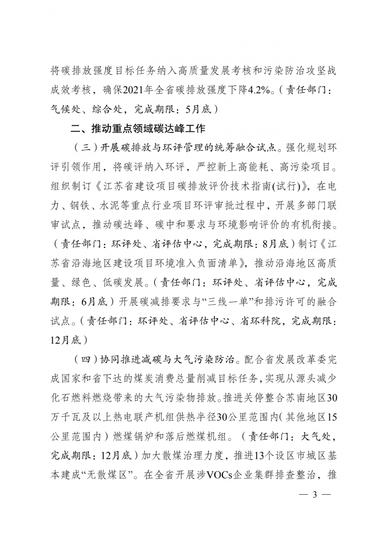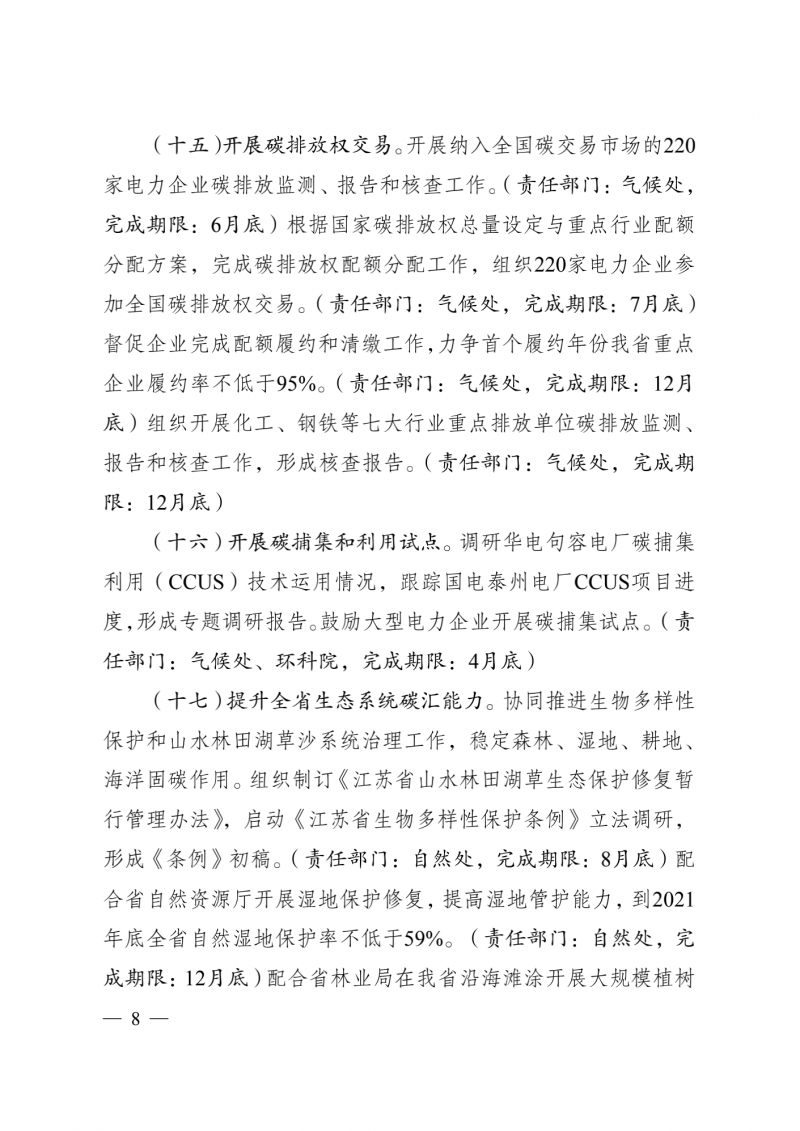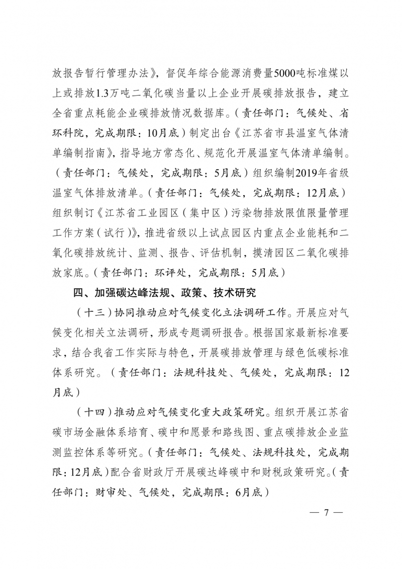 日前,《江蘇省生態(tài)環(huán)境廳2021年推動碳達(dá)峰碳中和工作計(jì)劃》印發(fā)。《計(jì)劃》是全國首創(chuàng)省生態(tài)環(huán)境系統(tǒng)關(guān)于碳達(dá)峰、碳中和的年度工作計(jì)劃,江蘇省欲推動構(gòu)建“1+1+6+9+13+3”碳達(dá)峰行動體系,建立碳減排監(jiān)測統(tǒng)計(jì)考核體系,督促年綜合能源消費(fèi)量5000噸標(biāo)準(zhǔn)煤以上或排放1.3萬噸二氧化碳當(dāng)量以上企業(yè)開展碳排放報告,建立全省重點(diǎn)耗能企業(yè)碳排放情況數(shù)據(jù)庫。