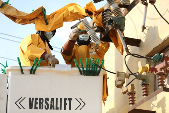 中國電力網(wǎng)訊 1月11日,在濰坊壽光市東羅橋村,國網(wǎng)壽光市供電公司帶電作業(yè)人員冒著嚴(yán)寒,對10千伏羅橋線東羅1號分支線004號桿損壞的跌落開關(guān)進(jìn)行緊急搶修,全面消除線路運行缺陷,為農(nóng)村客戶溫暖度冬提供可靠供電保障。