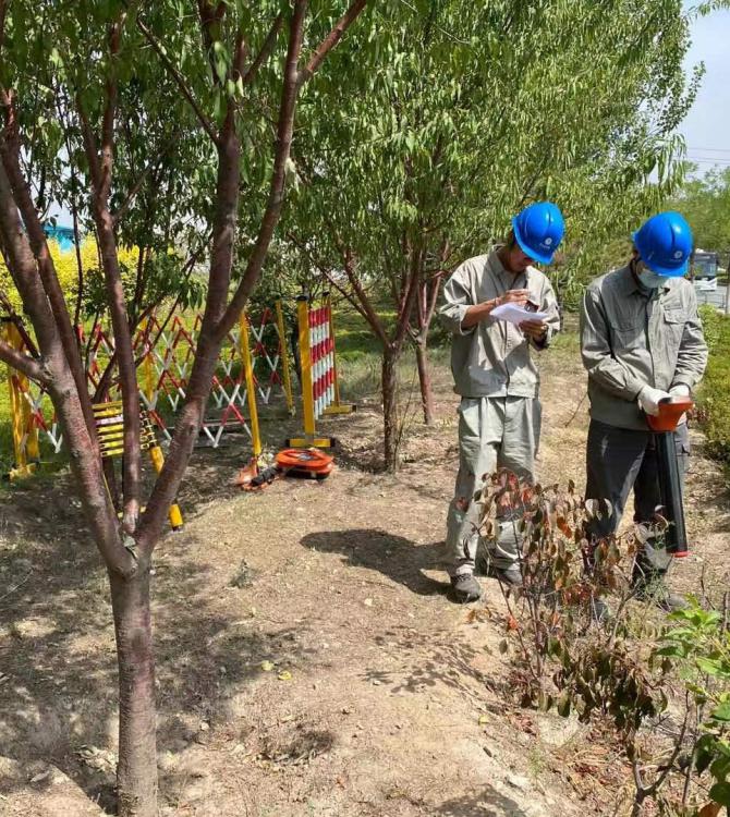 分局了解相關(guān)情況后,立即組織配電檢修試驗(yàn)班人員攜帶儀器前往現(xiàn)場(chǎng)。經(jīng)現(xiàn)場(chǎng)勘察了解,該校區(qū)擴(kuò)建區(qū)域涉及原居民用房及垃圾場(chǎng)所在地,位于小區(qū)、商業(yè)樓和沙河一小北區(qū)中間地帶,用戶較多,地下線路比較復(fù)雜,且部分電纜位于擴(kuò)建項(xiàng)目未拆除墻體內(nèi)側(cè),為保障電纜在施工過程中不受外力破壞、確保周圍用戶用電不被影響,工作人員在征得用戶同意后,對(duì)內(nèi)外側(cè)整段電纜進(jìn)行了探測(cè)。工作人員熟練調(diào)試儀器參數(shù),沿著電纜起點(diǎn)逐步探測(cè),耐心排除干擾信號(hào),確保精準(zhǔn)判斷電纜走向。頭頂夏日灼熱陽光,在兩個(gè)小時(shí)的緊張工作后,終于確定了該區(qū)域所有電纜路徑及埋深,此時(shí)已過了中午。該小學(xué)擴(kuò)建項(xiàng)目負(fù)責(zé)人向分局工作人表達(dá)了感謝:“這么大熱天,真是辛苦你們了,要不是有你們這么專業(yè)的儀器,我們施工風(fēng)險(xiǎn)肯定會(huì)增加,工期也可能會(huì)有延誤,供電局的技術(shù)和服務(wù)真是沒的說。”