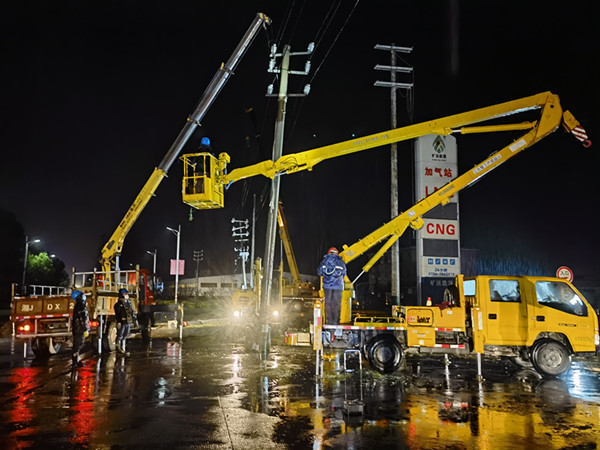 搶修人員首先通過轉(zhuǎn)變電網(wǎng)運行方式和轉(zhuǎn)移供電負(fù)荷,減小停電范圍,減少停電對周圍居民和工廠的影響。經(jīng)過對故障點隔離及負(fù)荷轉(zhuǎn)移等工作,于當(dāng)天下午16時35分,恢復(fù)居民正常用電,得到附近民眾的一致好評。與此同時,搶修人員一邊準(zhǔn)備安全工器具、照明燈具、大型吊車、挖掘機等搶修物資,一邊辦理故障緊急搶修單。在取得停電許可后,安排臺區(qū)管理員通知專公變客戶,并在微信群轉(zhuǎn)發(fā)停電信息,避免造成不必要的損失。