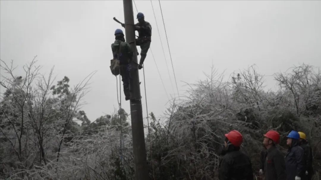 “因下凍雨的原因,這個(gè)變電桿覆冰好厲害,現(xiàn)在要把這個(gè)電桿冰除掉,才能夠上桿作業(yè),我們就采取土辦法,用刀刮,因?yàn)橐巴馍涣嘶穑瑳](méi)有其他設(shè)備,把這個(gè)冰刮了以后,再進(jìn)行人工作業(yè),電桿打滑打得好厲害。”國(guó)網(wǎng)鄱陽(yáng)縣供電公司游城供電所負(fù)責(zé)人謝雪兵說(shuō)道。