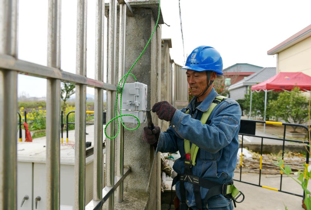 中國電力網(wǎng)訊(通訊員 陳倩菡) 3月26日上午,在余姚市河姆渡鎮(zhèn)車廄村,國網(wǎng)余姚市供電公司施工人員正緊鑼密鼓地進行水位監(jiān)測以及低壓智能開關(guān)的安裝工作,這也是“風雨無憂2.0”改造項目的其中一項工作。