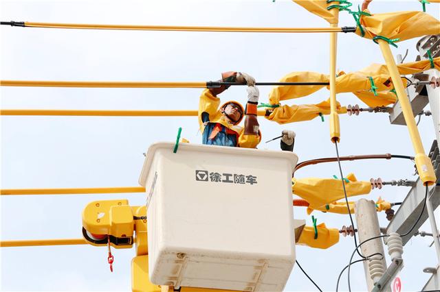 國網利辛縣供電公司帶電作業(yè)員工正在進行絕緣遮蔽工作。劉喆攝
